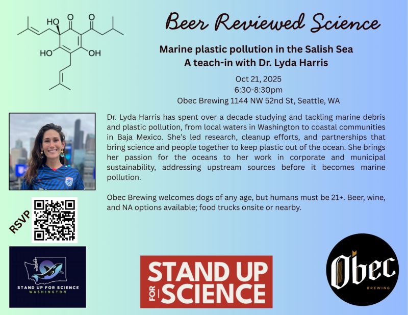 Presenting for my local community, at breweries, with dogs, and for a movement as powerful as Stand Up for Science are a few of my favorite things. I had the wonderful opportunity to discuss how marine plastic pollution is a “Wicked Problem” in an informal conversation during One Ocean Week and for Stand Up For Science Washington. There were over 60 attendees who drank beer, learned about the intersections of plastic pollution and climate change, and asked insightful and educated questions.
