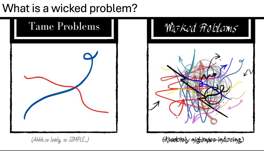 Wicked Problems are complex social or cultural challenges/problems that doesn’t have just one simple solution. Often the problem has interconnected, confounding, incomplete, and contradictory elements. Solutions need to be concurrent, ongoing, multi-faceted and cross-sector to start to turn off the tap of plastic pollution.
